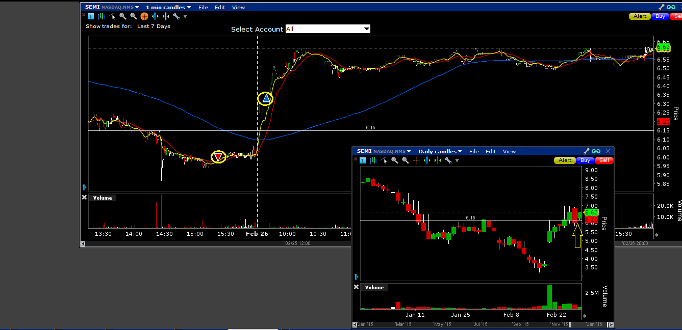 Shorted before the close and held overnight because i was expecting a gap-down or at least a morning panic at the open. Stock closed red on the day and this was a first big red candle after the runnup. Beside that it could not hold above $6.15 which was important area. Covered for a loss next day and i was actually quite surprised because it had a decent gap-up so there was no chance to cut loss faster. It has totally tricked me.