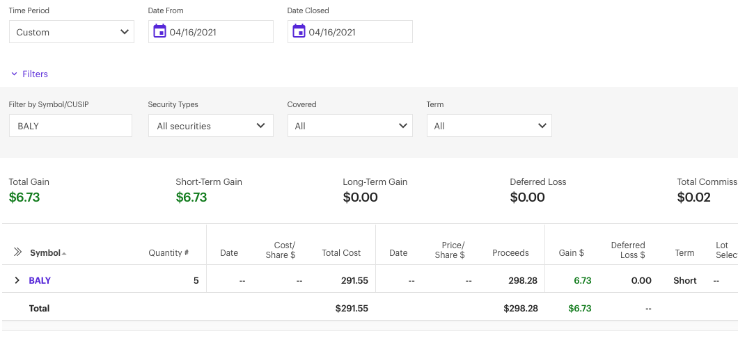 Exit comments: Not volatile enough. It was worth a try. Exited for Taco Bell money.