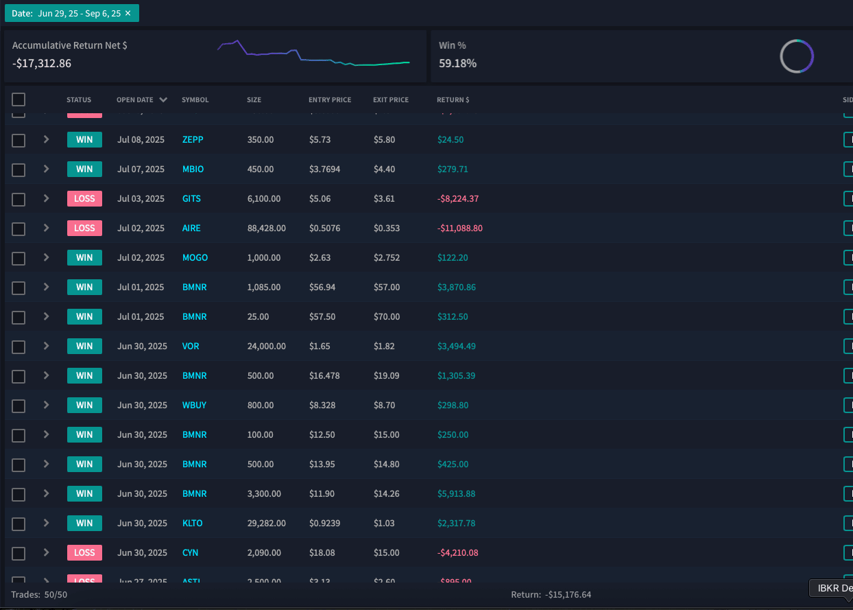 Tough summer, had a great start to the year and then threw it away on 7 big losses out of 50 trades which took me negative.for the year Terrible risk management.