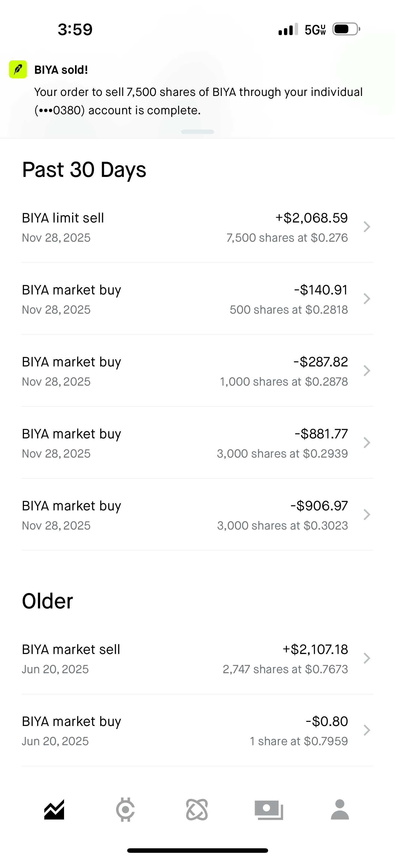 Panic dip buy at open. HOD was .39. Dipped to .25 and just couldn't get above my entry. Cut Losses Quickly..