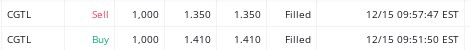 man.. so bummed. it was going as planned until it wasn't. A huge sell happened and it went down.. however, the price was shaking and I wondered if it was looking for a squeeze, but it went down. Granted it's up to 1.39 right now. I did hit my stop and I got out as planned. just bummed.. This one also came out of the upward trend and that is sign I should have exited and possibly before my stop.