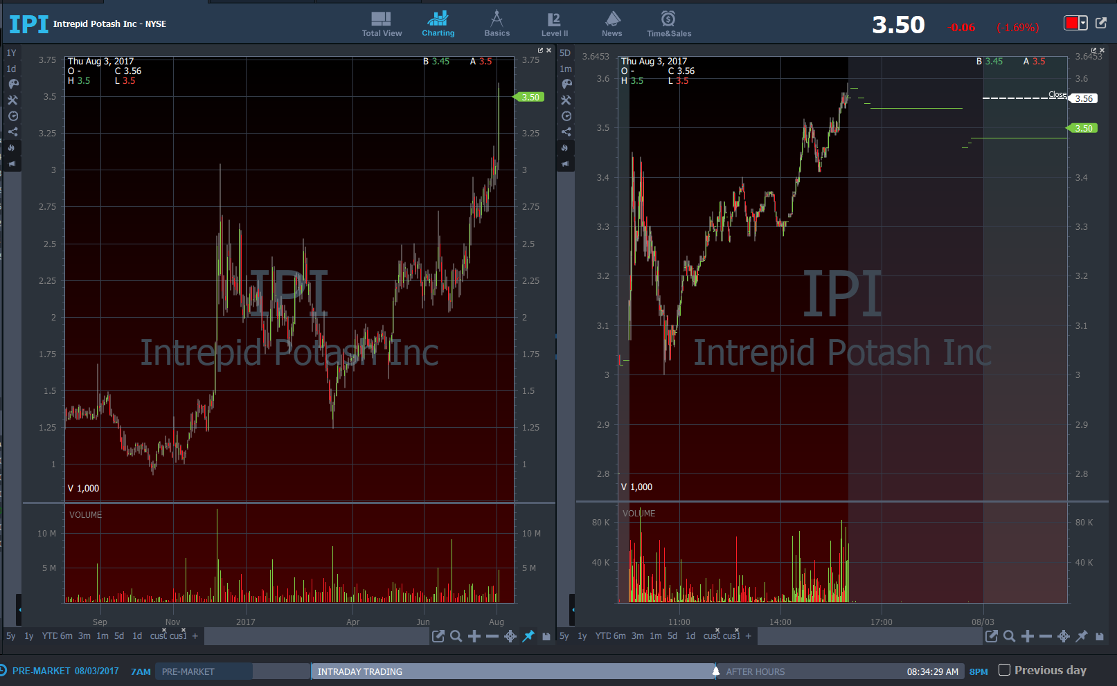 IPI 6:52 AM - earnings winner, potential long on weak open red green LL 6:54 AM - Earnings winner, potential long on weak open red green ===Short=== MTBC